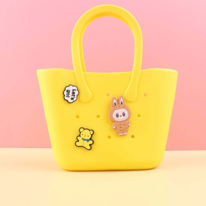 - Multi functional: The breathable hole design can help dry the damp items in the rubber mini bag. ensuring that various items are clean and fresh. So cute. Can be used as a beach bag. swimming pool handbag. girl shopping bag. daughter lunch bag etc