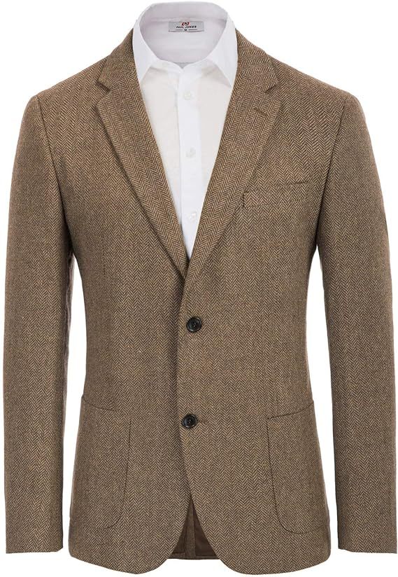 Herringbone Tweed: The mens tweed blazer is herringbone fabric, This presents a diagonal herringbone pattern, Which looks like a zigzag shape, Vintage and classy